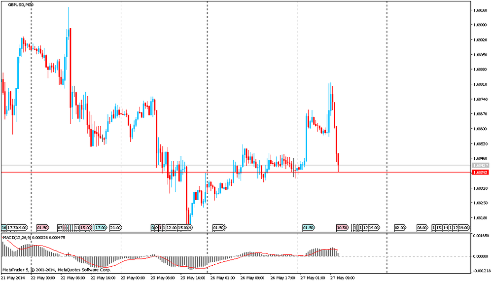 La libra cayó a 1,6839 dólares tras la publicación de los datos negativos sobre las solicitudes aprobadas para los préstamos hipotecarios según los datos de BBA de Reino Unido. La cifra de abril fue de 42.200, mientras que el valor anterior y las expectativas de los analistas estaban en la zona de 45,9-45,2. Por lo tanto, los datos no cumplieron con las expectativas de los expertos.
