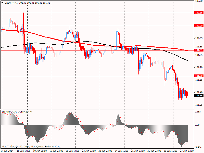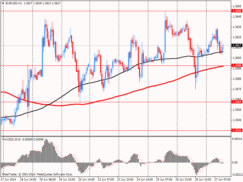 El euro bajó frente al dólar volviendo al nivel de apertura. Influido por los datos de la Comisión Europea, que mostró que el índice compuesto de la confianza en la economía de la zona euro tanto empresarial como de los consumidores cayó en junio de 2014 a 102 puntos desde los 102,6 puntos revisados de mayo. Los analistas esperaban un aumento del índice hasta 103 puntos de los 102,7 puntos anunciados previamente. La caída del índice inesperada refleja el deterioro de confianza en junio en el sector manufacturero debido al conflicto de Ucrania y al fortalecimiento de la moneda europea. Al mismo tiempo, el índice de confianza en el sector de servicios subió este mes a 4,2 puntos frente a 3,8 puntos del mes anterior y fue mejor de los 4 puntos que esperaban los analistas. La valoración del Índice de confianza de los consumidores se bajó en junio a -7,5 puntos de los -7,4 puntos anunciados previamente. En mayo, la cifra fue de -7,1 puntos (máximo desde el año 2007).