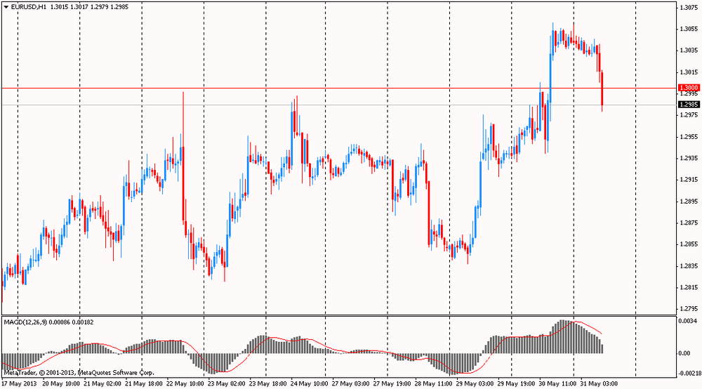 El yen cayó frente a las principales monedas, en medio de caída de la inflación. Los precios al consumidor en Japón cayeron en abril un 0,4% en términos anuales. La deflación en curso en el país pone en duda la posibilidad de alcanzar la meta de inflación del Banco de Japón del 2%. Eso podría empujar al Banco de Japón a una mayor expansión de los programas de estímulo monetario.Nisiquiera el incremento de la producción industrial en Japón se elevó en abril de 2013 en un 1,7% ayudó al yen . El resultado superó la previsión del consenso de los analistas, que fue del 0,5%, lo cual es una señal de una recuperación más rápida de la economía japonesa de lo esperado. El crecimiento de la producción industrial continúa en Japón por quinto mes consecutivo.