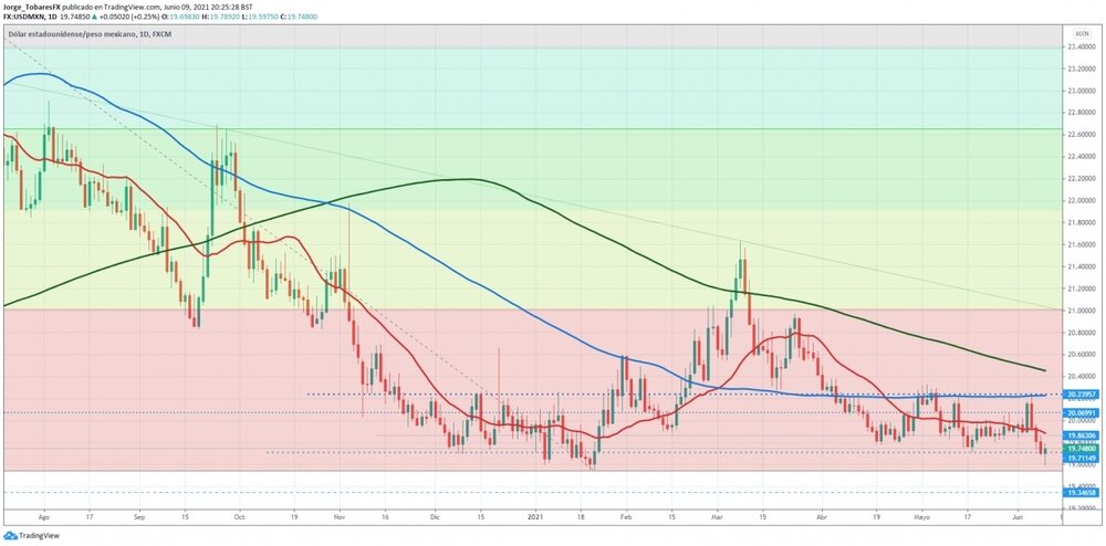 El USD/MXN registró su nivel más bajo desde el 21 de enero en 19.59, sólo cuatro pips por encima de su mínimo del 2021, aunque el billete verde logró recuperar terreno durante la tarde americana, revirtiendo las pérdidas intradiarias y llevando la cotización nuevamente a la zona de 19.75.
