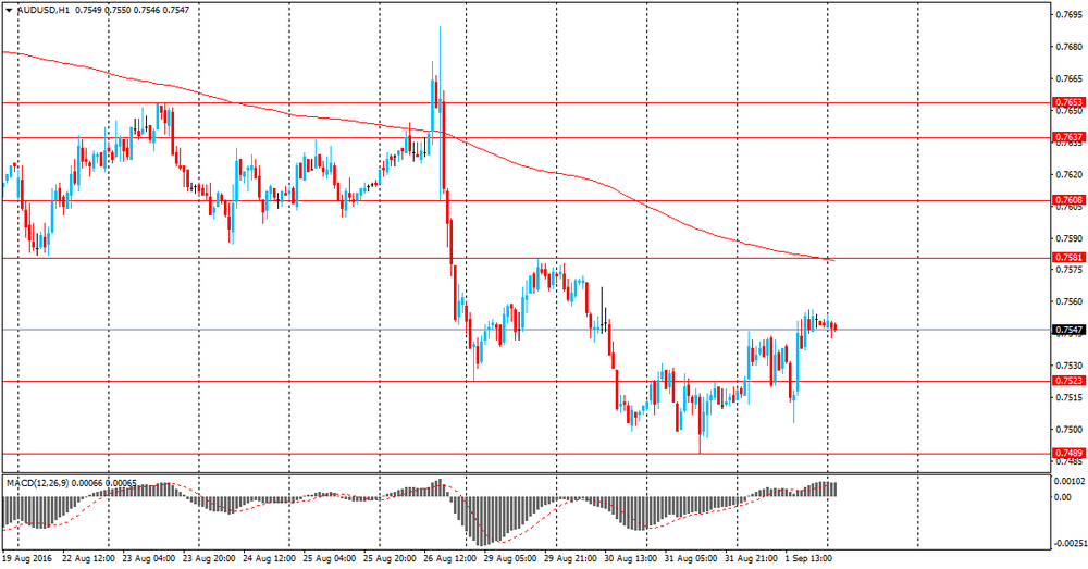 Resistance 1: $ 0.7580 (Aug 29-30 high)