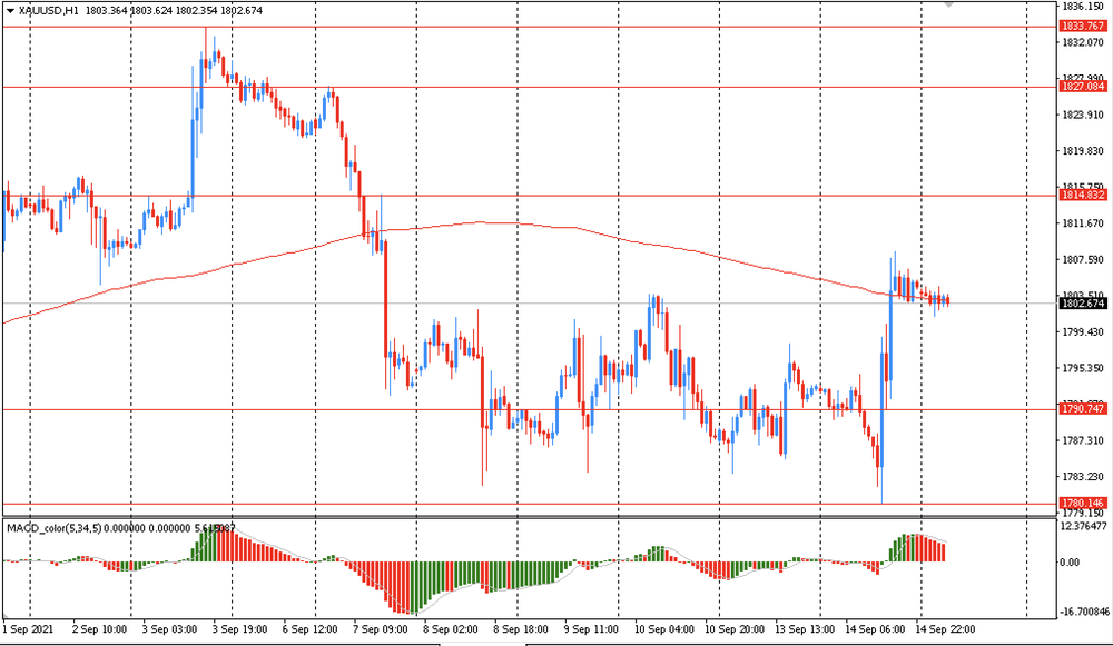 Probably, the main scenario is a downward movement to $1790 (low of the American session on Sep 14). An alternative scenario is a final consolidation above the MA 200 H1, followed by a rise to $1833 (Sep 3 high).