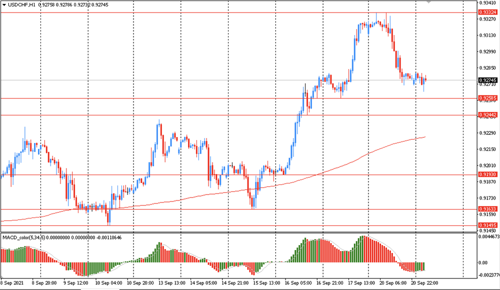 The USD/CHF was trading lower yesterday and closed the day in the red around the Chf0.9275. Today it was trading in a narrow range of Chf0.9265-80, staying close to yesterday's closing price. On the hourly chart, USD/CHF is still trading above the MA line (200) H1 (Chf0.9225). The situation is similar on the four-hour chart. Based on the foregoing, it is probably worth sticking to the northern direction in trading, and while the USD/CHF remains above MA 200 H1, it may be necessary to look for buy entry points for the formation of a correction.