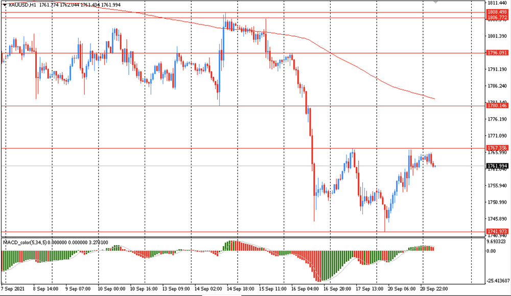 Yesterday, the XAU/USD was trading higher and closed the day in positive territory around $1763. Today gold was trading in a narrow range of $1761-65, staying close to yesterday's closing price. On the hourly chart, XAU/USD is still trading below the moving average MA (200) H1 ($1782). The situation is similar on the four-hour chart. Based on the foregoing, it is probably worth sticking to the south direction in trading and while the XAU/USD remains below MA 200 H1, it may be necessary to look for entry points to sell on the formation of a correction.