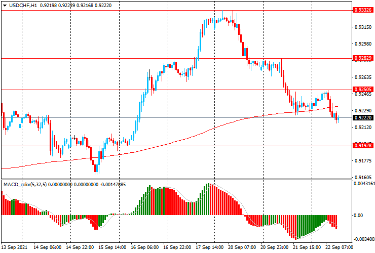 The main scenario for the pair's promotion — breakout of the session maximum of Chf0. 9250 and there may be an increase to Chf0. 9280 (September 21 high)