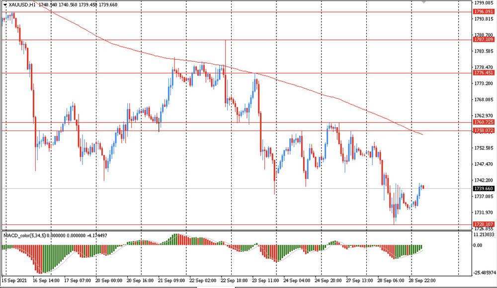 Probably, the main scenario is a downtrend to $1728 (Sep 28 low). An alternative scenario is a final consolidation above MA 200 H1 with a subsequent rise to $1808 (Sep 14 high).