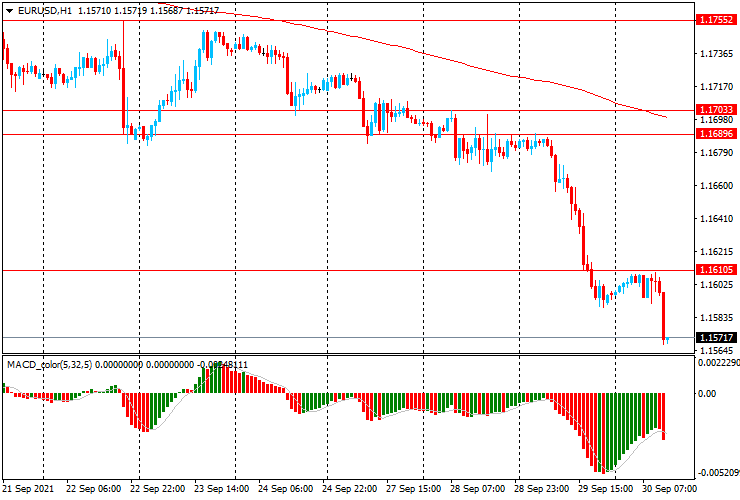 An alternative scenario — breakout of the session high of $1.1610 and there may be an increase to $1.1690-1.1705 (September 28-29 highs, MA (200) H1)