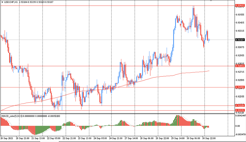 Yesterday, the USD/CHF was trading lower and closed the day in the red around the Chf0.9320. Today it was trading in a narrow range of Chf0.9310-30, staying close to yesterday's closing price. On the hourly chart, USD/CHF is still trading above the moving average MA line (200) H1 (Chf0.9275). The situation is similar on the four-hour chart. Based on the foregoing, it is probably worth sticking to the northern direction in trading, and while the USD/CHF remains above MA 200 H1, it may be necessary to look for buy entry points to form a correction.