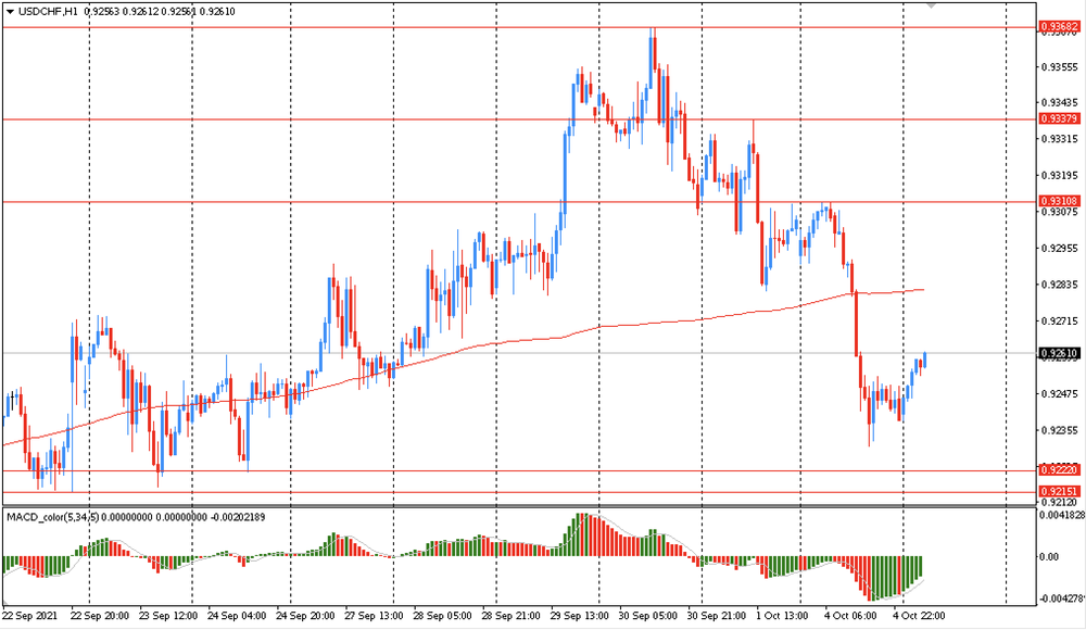 Yesterday, the USD/CHF was trading lower and closed the day in the red around the Chf0.9245. Today it rallied slightly, rising to the level of Chf0.9260. On the hourly chart, USD/CHF is testing its support - the MA (200) H1 (Chf0.9280) moving average line. On the four-hour chart, it remains above the MA 200 H4 line for now. Based on the above, it is probably worth sticking to the northern direction in trading and while the USD/CHF remains above MA 200 H1, it may be necessary to look for buy entry points at the end of the correction.