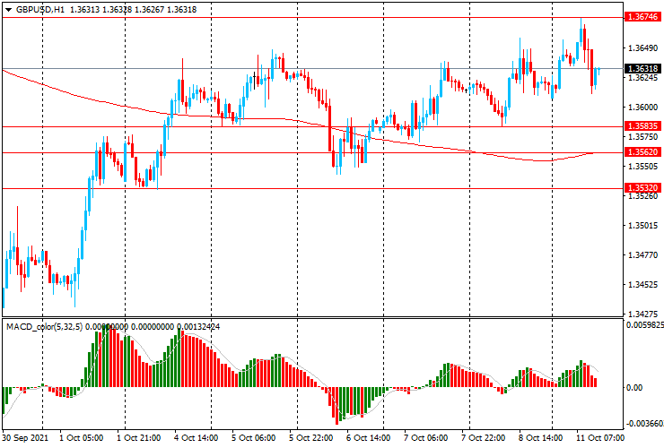 The main scenario for the pair's promotion — the pair may decline to $1.3560-85 (October 7-8 lows, MA (200) H1)