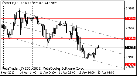 Сопротивление 2: Chf0.9185 (максимум американской сессии 11 апреля)