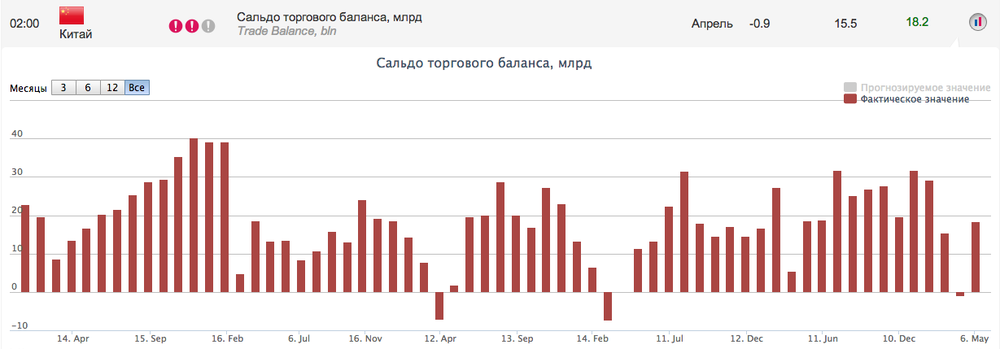 сальдо торгового баланса Китая в апреле составило $18,2 млрд.