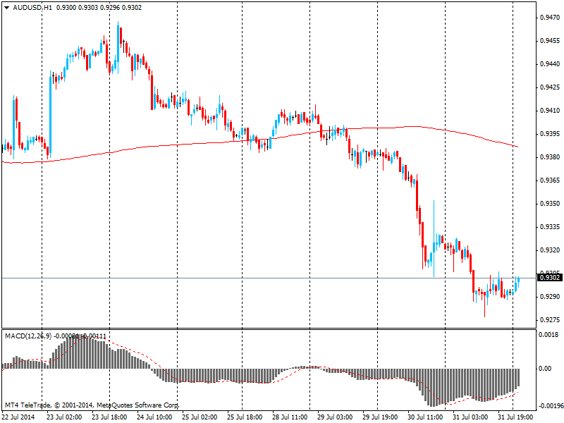 С начала торговой сессии австралийская валюта демонстрировала рост после выхода позитивных данных по индексу активности в производственном секторе Австралии. Индекс деловой активности в производственном секторе Австралии вырос 1,7 пункта, достигнув показателя 50,7 после восьмимесячного спада. Но потом курс австралийского доллара снизился после выхода окончательных данных по индексу менеджеров по снабжению для производственной сферы Китая за июль, который составил 51,7 против предварительного значения 52,0.