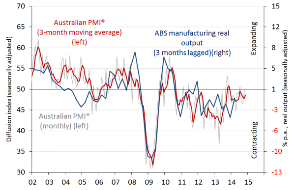 Недавние результаты предполагают, что выпуск продукции обрабатывающей промышленности (как измерено ABS в объемах валовой добавленной стоимости), вероятно, будет устойчивым в последнем квартале 2014 года