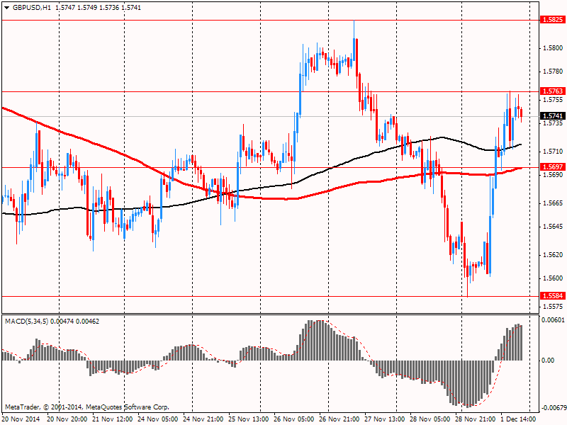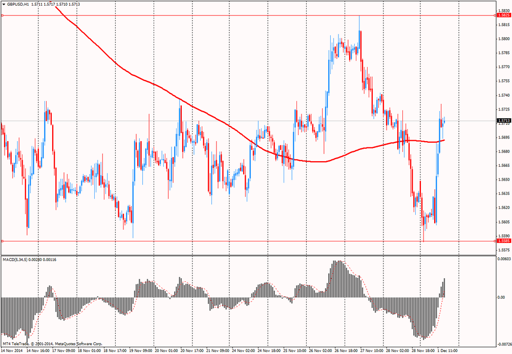 Фунт существенно подорожал против американской валюты, отступив при этом от минимума текущего года, чему помогли положительные данные по PMI Британии. Как сообщалось ранее, рост промышленного производства в Великобритании неожиданно ускорился в ноябре 2014 года до самых быстрых темпов за последние 4 месяца. Значение индекса менеджеров по закупкам, рассчитанного Markit Economics, выросло до 53,5 пункта по сравнению с пересмотренным значением за октябрь на уровне 53,3 пункта. Значение ниже 50 пунктов указывает на сокращение производственной активности по сравнению с предыдущим месяцем, тогда как показатель выше 50 пунктов говорит о росте. Согласно опросу, экономисты прогнозировали значение индекса на уровне 53,1 пункта. Отчет показал, что экспортные заказы упали третий месяц подряд, еще раз подчеркнув зависимость Великобритании от внешнего спроса. Данные, вышедшие на прошлой неделе, показали скачок потребительских расходов, поспособствовавших росту седьмой квартал подряд за три месяца, окончившихся в сентябре.