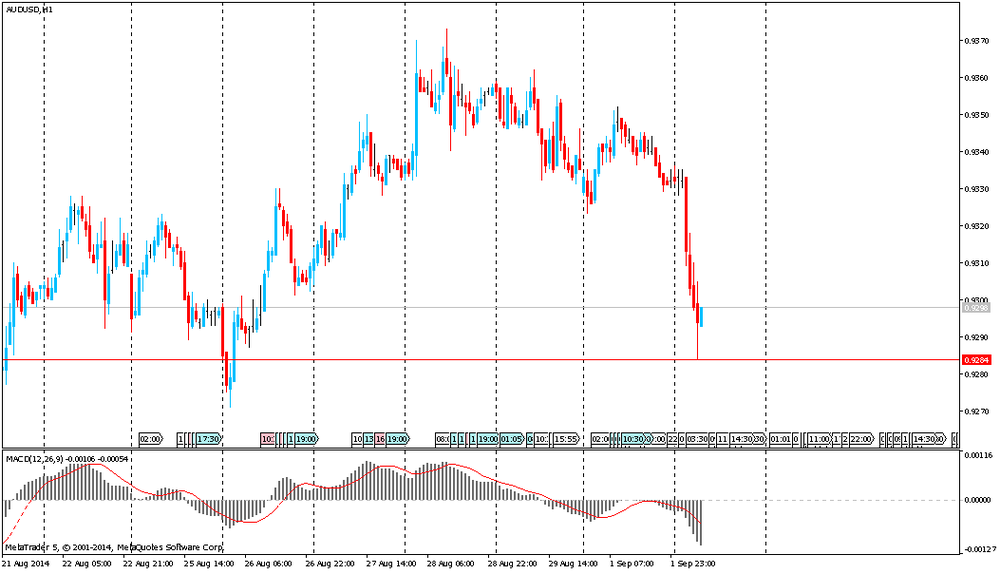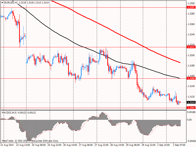Евро упал к годовому минимуму по отношению к доллару после снижения окончательного индекса PMI для производственной сферы еврозоны Markit в августе до 50,7 против предварительного значения 50,8 и против июльского значения 51,8, а также снижение окончательного индекса PMI для производственной сферы Германии Markit в августе до 51,4 против предварительного значения 52,0 и против июльского значения 52,4. Давление на евро также оказывает позитивное отношение инвесторов к доллару, сохраняющаяся напряженность между Россией и Украиной и склонность ЕЦБ к мягкой денежно-кредитной политике.