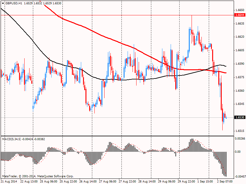 Фунт заметно подешевел против доллара, достигнув при этом пятимесячного минимума, несмотря на позитивные результаты отчета PMI. Эксперты говорят, что, судя по всему, рост беспокойства в связи с проведением референдума о независимости в Шотландии сыграл свою роль в падении фунта стерлинга. Согласно опросу YouGov, результаты которого были опубликованы сегодня, перевес голосов "против" составляет всего 6 п.п., без учета неопределившихся избирателей. Это намного ниже предыдущих 22 п.п., которые были зафиксированы менее месяца назад, и ниже 14 п.п. в середине августа (без учета неопределившихся избирателей).