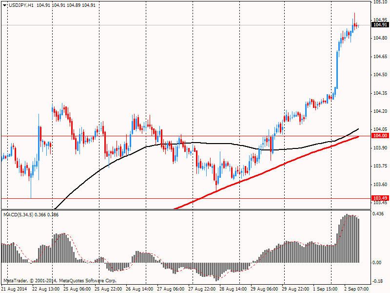 Согласно вышедшим данным, индекс менеджеров по снабжению (PMI) для производственной сферы ISM в августе вырос до 59,0 против 57,1 в июле, достигнув самого высокого значения с марта 2011 года.