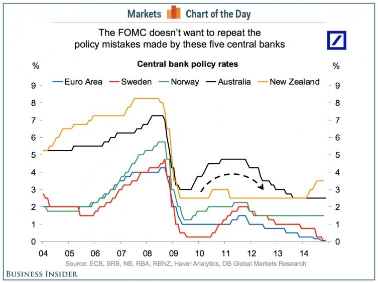 Центральные банки по всему миру борются с инфляцией, оказавшейся ниже прогноза, а во многих случаях и со слабым экономическим ростом. В этих условиях Европейский центральный банк и Банк Японии усилили меры стимулирования экономики. ФРС завершила программу покупки облигаций, но ее руководители все еще боятся преждевременного повышения процентных ставок и нанесения вреда укрепляющемуся восстановлению экономики.