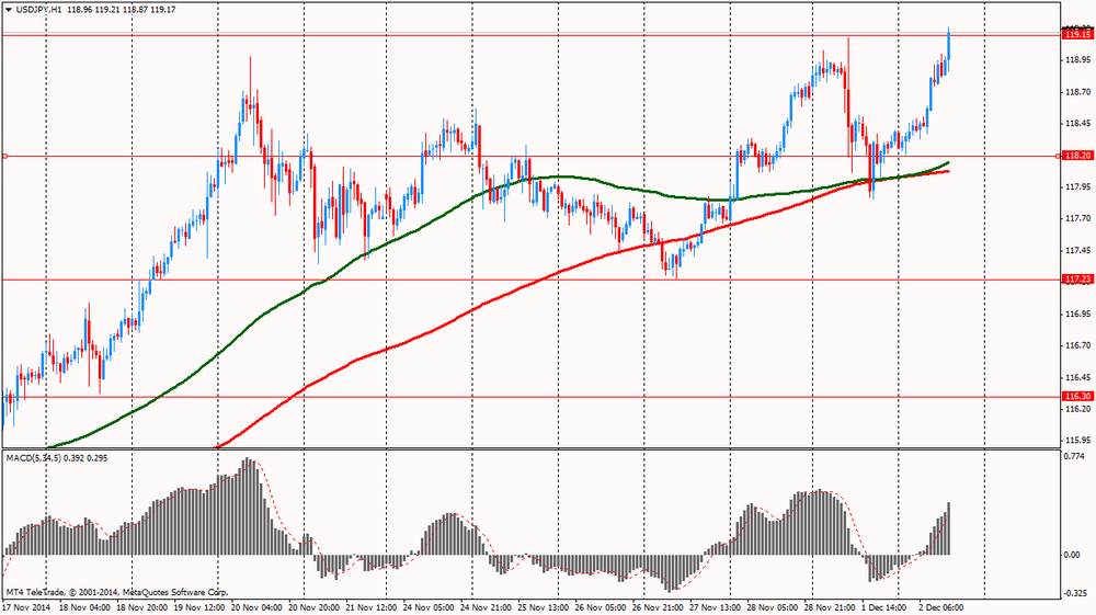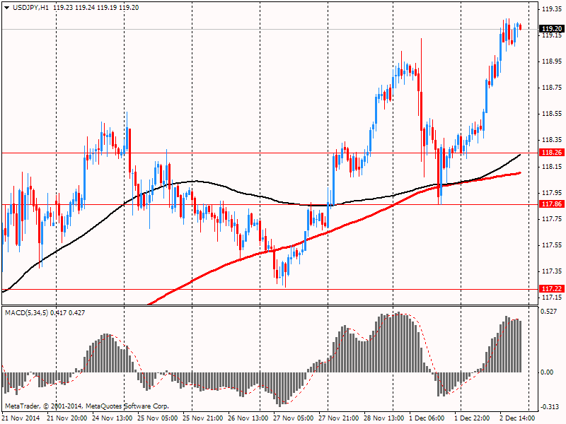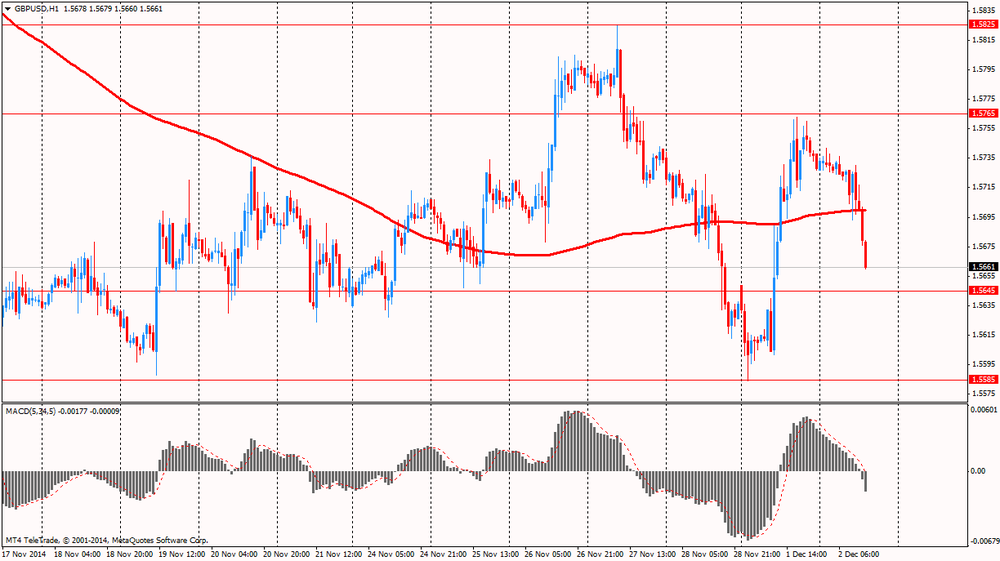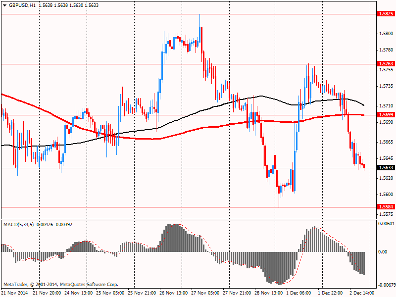Фунт существенно подорожал против американской валюты, отступив при этом от минимума текущего года, чему помогли положительные данные по PMI Британии. Как сообщалось ранее, рост промышленного производства в Великобритании неожиданно ускорился в ноябре 2014 года до самых быстрых темпов за последние 4 месяца. Значение индекса менеджеров по закупкам, рассчитанного Markit Economics, выросло до 53,5 пункта по сравнению с пересмотренным значением за октябрь на уровне 53,3 пункта. Значение ниже 50 пунктов указывает на сокращение производственной активности по сравнению с предыдущим месяцем, тогда как показатель выше 50 пунктов говорит о росте. Согласно опросу, экономисты прогнозировали значение индекса на уровне 53,1 пункта. Отчет показал, что экспортные заказы упали третий месяц подряд, еще раз подчеркнув зависимость Великобритании от внешнего спроса. Данные, вышедшие на прошлой неделе, показали скачок потребительских расходов, поспособствовавших росту седьмой квартал подряд за три месяца, окончившихся в сентябре.