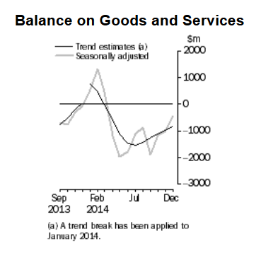 В декабре сальдо внешней торговли Австралии (с сезонной коррекцией) было отрицательным - -A$0,44 млрд. Это на A$580 млн. меньше, чем дефицит сальдо внешней торговли в ноябре, и лучше ожиданий экономистов, предполагавших -A$0,85 млрд. Данные по сальдо внешней торговли в ноябре были пересмотрены с понижением, с -A$0,93 млрд. до -A$1,02 млрд. Торговый баланс - эьл индикатор, публикуемый Австралийским бюро статистики и оценивающий соотношение между объемами экспорта и импорта товаров. Показатели экспорта являются важным индикатором темпов роста австралийской экономики, в то время как импорт указывает на уровень внутреннего спроса. Устойчивый спрос на экспорт из Австралии ведет к росту профицита торгового баланса, что оказывает положительное влияние на австралийскую валюту.