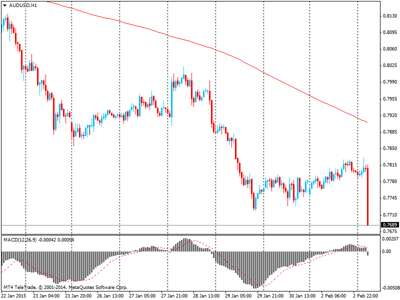 Австралийский доллар упал по отношению к основным валютам, после того, как Резервный банк Австралии понизил ставки на 25 базисных пунктов до 2,25%. Тем самым РБА присоединился к другим центральным банкам мира, которые смягчают денежно-кредитную политику и понижают ставки. Аналитики ожидали, что РБА оставит ставки без изменений и не будет понижать их до марта. "Темпы экономического роста в Австралии остаются ниже прогнозировавшихся, - заявил председатель центробанка Гленн Стивенс. - Сохраняется слабый уровень внутреннего спроса, и, как следствие, уровень безработицы в прошлом году постепенно начал расти". Он напомнил, что "в течение последних полутора лет учетная ставка не менялась, и у руководства Резервного банка было время для оценки последствий существенного ослабления кредитной политики в Австралии и других странах".