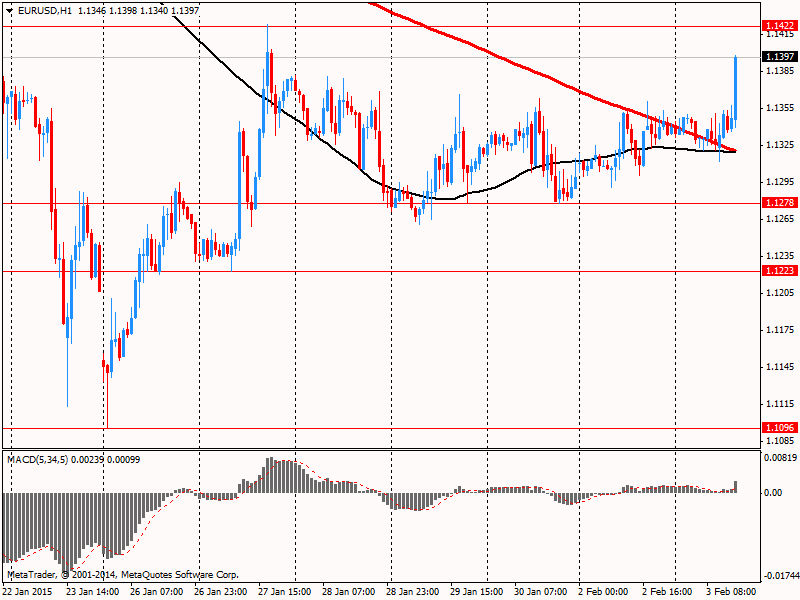 Евро торгуется смещенном в сторону роста по отношению к доллару, получая поддержку со стороны ухудшения отношения к американской валюте после публикации разочаровывающих данных по индексу деловой активности производственной сферы США в январе по версии ISM. Индекс PMI для производственной сферы США упал в январе до 53,5 против 55,5 в декабре. Пару EUR/USD также поддерживает заявление министра финансов Греции о том, что Афины больше не будут призывать кредиторов к списанию части долга Греции объемом 315 млрд евро. Вместо этого, власти страны попросят представить "варианты долговых свопов" для облегчения долговой нагрузки.