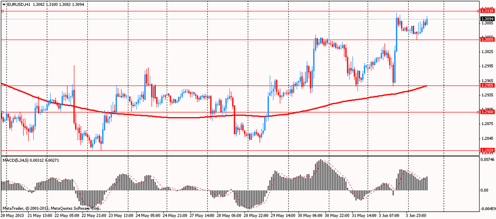 Индекс доллара упал к месячному минимуму после того, как вчера производственный индекс Института Управления Поставками в США снизился в мае самыми быстрыми темпами за последние четыре года. Показатель упал к отметке 49, что является самым низким значением с июня 2009 года. Аналитики в среднем прогнозировали увеличение индекса до 51 пункта с 50,7 пункта месяцем ранее.