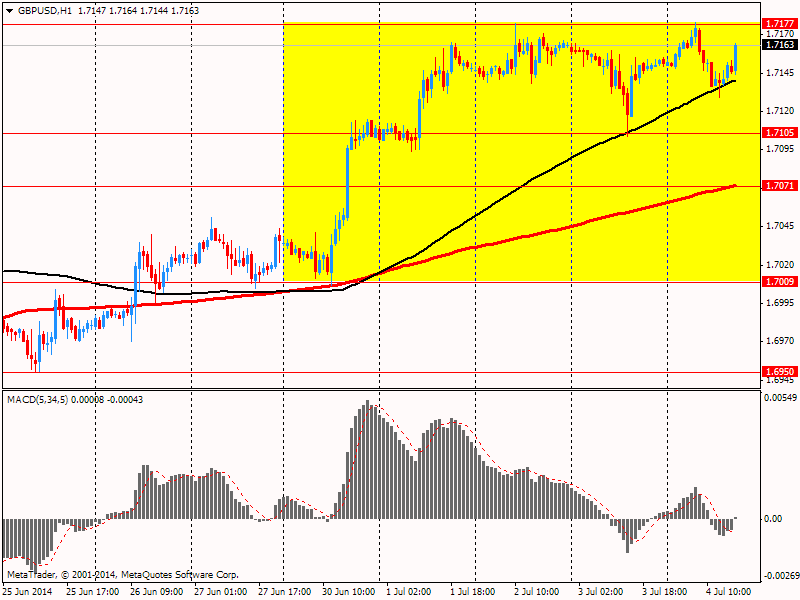 Важными также оказались данные по производственной активности, которые показали: производственный PMI Великобритании вырос до 57,5 в прошлом месяце после 57,0 в мае. Аналитики ожидали, снижения индекса до 56,8. Доклад также сообщил: экономика Великобритании продолжает расти во втором квартале высокими темпами, усиливая надежды, что продолжение восстановления подтолкнет Банк Англии к повышению процентных ставок. Безработица в Великобритании находится на самом низком уровне за пять лет, цены на жилье активно растут, а экономика в целом в этом году, как ожидается, покажет лучший подъем среди стран G7. На этом фоне инвесторы ожидают первого повышения базовой процентной ставки Банком Англии за посткризисный период к февралю 2015 года.