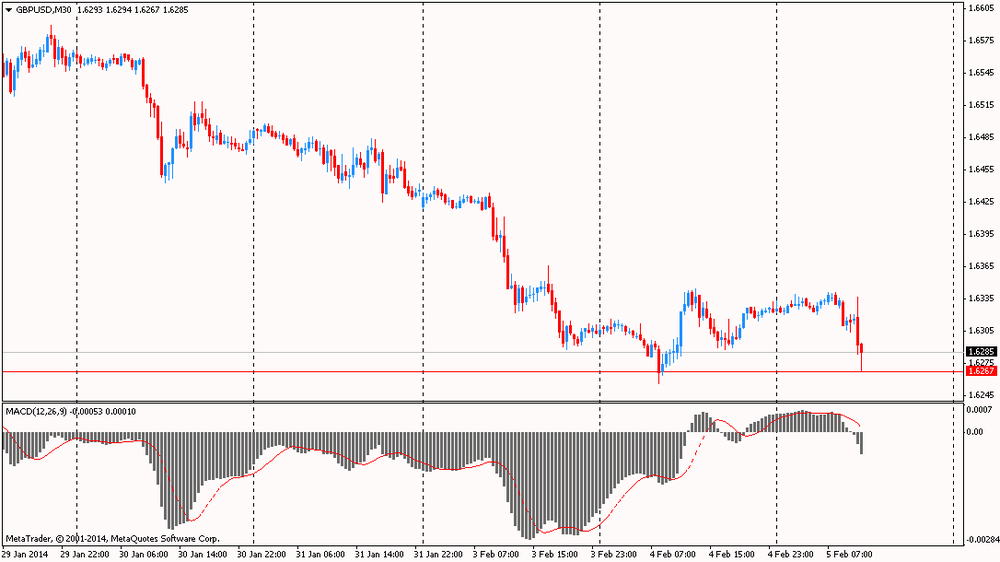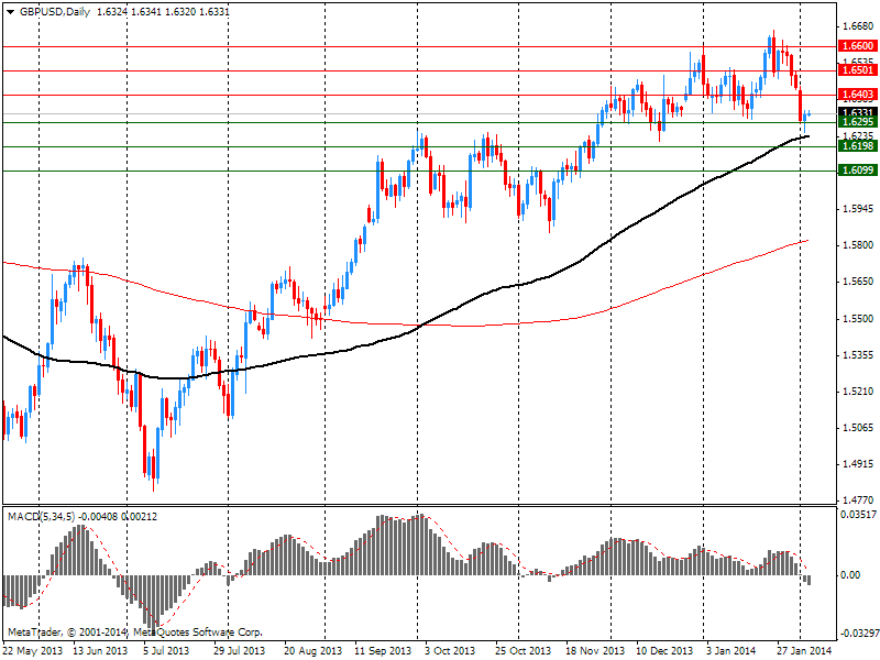 Курс британского фунта ранее резко обвалился против доллара США, что было связано с выходом неожиданно слабых данных по Британии. Как стало известно, рост в секторе услуг Британии, который является доминирующим, неожиданно замедлился в прошлом месяце, но активность оставалась высокой, предполагая, что экономика будет набирать обороты в первом квартале 2014 года. Опрос компаний также показал рост ценового давления для сектора услуг, но не до уровня, который мог бы стать проблемой для Банка Англии, и подтолкнуть его к повышению процентной ставки. Согласно отчету, индекс PMI в секторе услуг снизился в январе до 58,3 пункта с 58,8 пункта в декабре, достигнув самого низком значения с июня. Добавим, что согласно средним прогнозам экспертов, значение данного индекс должно было вырасти до 59,1 пункта. Тем не менее, не смотря на спад, индекс остался значительно выше отметки 50 пунктов, которая отделяет рост от сокращения.