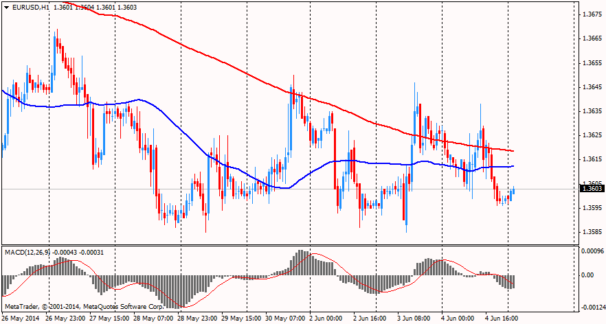 Индекс волатильности валют G-7 на рынке FOREX, рассчитываемый JPMorgan, обновив семилетний минимум 30 мая, закрылся ростом уже третий день подряд в преддверии сегодняшних заседаний ЕЦБ и Банка Англии. Евро подешевел против большинства основных валют, фунт пользовался довольно неплохим спросом. "Главным драйвером сегодняшних движений станут результату заседания ЕЦБ" - считают эксперты из Bank of New York Mellon. Банкиры уверенны, что все ждут от ЕЦБ принятия каких-то стимулирующих мер, но никто не знает, какими именно они окажутся. "Если будет объявлено о запуске программы покупки активов, ключевым вопросом станет ее объем. Консенсусный прогноз заключается в том, что в течение года ЕЦБ примет целый ряд стимулирующих мер, и сегодня будет объявлено лишь о первых из них" - заявили в Bank of New York Mellon. Согласно среднему прогнозу экономистов ведущих банков, трейдеры ждут дальнейшего снижения пары EUR/USD и планируют продавать ее на отскоках.