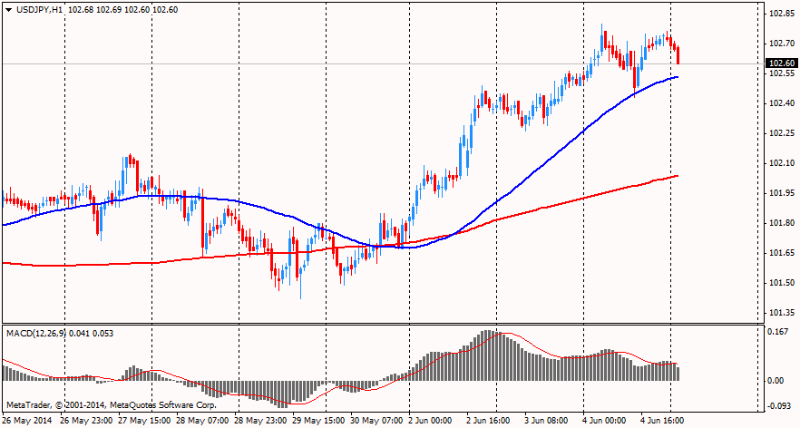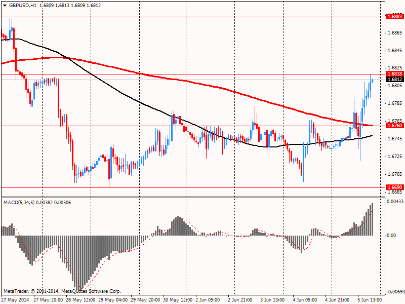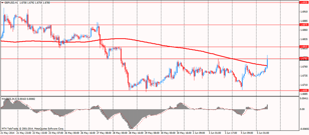Поддержку доллару оказали данные по США, которые показали: индекс деловой активности в сфере услуг США вырос в мае 2014 года до 56,3 пункта - максимального уровня с августа 2013 года, по сравнению с 55,2 пункта в апреле. Эксперты ожидали повышения показателя до 55,6 пункта. Превышение индексом отметки в 50 пунктов свидетельствует о росте деловой активности в сфере услуг, тогда как значение индекса менее 50 пунктов говорит о ее снижении. Подындекс, показывающий уровень занятости в сфере услуг США, в мае поднялся до 52,4 пункта с 51,3 пункта месяцем ранее. Показатель новых заказов подскочил до 60,5 пункта с 58,2 пункта, а подындекс бизнес-активности - до 62,1 пункта с 60,9 пункта. ISM рассчитывает индекс ISM Non-Manufacturing на основании данных компаний из 62 сегментов сферы услуг, на долю которой приходится почти 90% американского ВВП. Среднее значение индикатора после окончания рецессии в июне 2009 года равнялось 53,7 пункта.