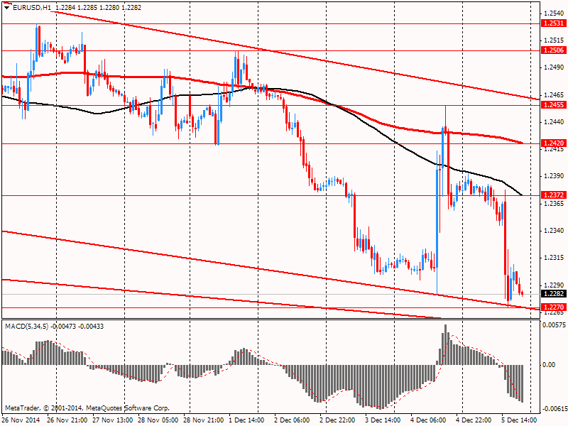 Евро резко вырос против доллара США, достигнув двухдневного максимума, но позже утратил большую часть позиций. Поддержку евро оказали слова президента Европейского центрального банка Марио Драги. После решения сохранить процентную ставку на рекордно низком уровне 0,05% Драги заявил, что банк не запускает программу количественного смягчения в настоящее время, отметив, что ЕЦБ намерен пересмотреть меры стимулирования в первом квартале 2015 года. Также Драги добавил, что ЕЦБ намерен пересмотреть успешность и эффективность существующих программ стимулирования, а также воздействие низких нефтяных цен на экономику еврозоны в начале следующего года. Он также сообщил, что банк потенциально может изменить размер, масштаб и состав существующих программ по стимулированию экономики. Управляющий совет придерживается мнения, согласно которому правильно принимать любые дополнительные меры в случае необходимости. ЕЦБ пересмотрел в сторону существенного понижения прогнозы роста и инфляции и предупредил, что последние прогнозы не принимают во внимание недавнее резкое падение цен на нефть. Теперь банк ожидает, что экономика еврозоны покажет рост всего на 0,8% в этом году, 1,0% в 2015 году и 1,5% в 2016 году; банк сократил прогноз инфляции на этот год до 0,5% с 0,6%, а в 2015 году с 1,1% до 0,7%.