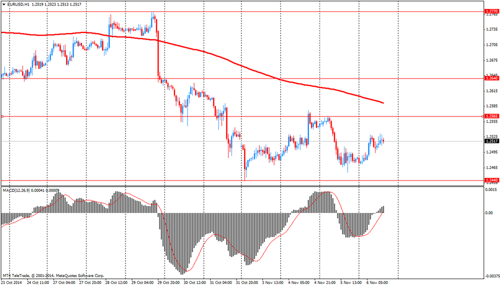 Доллар США продолжал консолидироваться против евро, оставаясь при этом ниже уровня $1.25. Стоит подчеркнуть, что пара смогла обновить дневные минимумы после публикации слабых данных по индексу деловой активности ISM в непроизводственной сфере США. Впрочем, продавцам не хватило сил, чтобы развить нисходящий импульс, и вскоре цена вернулась к исходным уровням. Как сообщалось ранее, в октябре индекс деловой активности в сфере услуг США, рассчитываемый Институтом управления поставками (ISM), ухудшился, достигнув при этом уровня 57,1 по сравнению с сентябрьским чтением на отметке 58,6. Согласно прогнозу экспертов, значение данного показателя должно было снизиться до 58,2. Все основные суб-индексы остались в октябре на территории расширения (больше 50), причем рост показал один индекс из четырех. В целом суб-индексы проявили себя следующим образом: индекс новых заказов в октябре упал до 59,1 против 61,0 в сентябре, индекс цен снизился до 52,1 с 55,2, индекс занятости улучшился до 59,6 с 58,5 в сентябре, а индекс деловой активности упал до 60,0 против 62,9 в сентябре.
