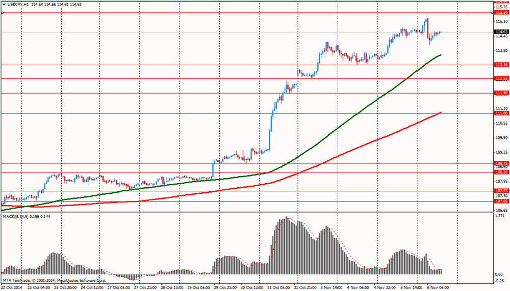 Доллар США вырос до самого высокого уровня за последние семь лет по отношению к иене в качестве признаков роста экономики США, поддержав спекуляции, что Федеральная резервная система повысит процентные ставки в следующем году. Пара USD/JPY пробила психологически важный уровень 115 впервые с ноября 2007 года, получив поддержку со стороны активных покупок доллара краткосрочными иностранными инвесторами и японскими банковскими дилерами.