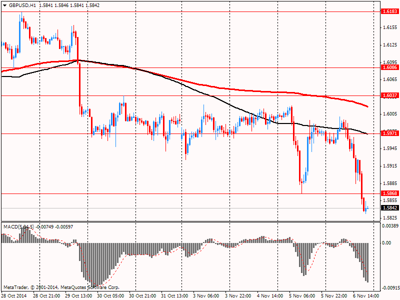 Британский фунт резко снизился по отношению к доллару США, достигнув новых годовых минимумов, но затем смог восстановить почти все ранее утраченные позиции. Первоначально давление на фунт оказали новости по США, которые вызвали повсеместное укреплением американской валюты. Как стало известно, республиканцы одержали первые важные победы в штатах Кентукки и Западная Вирджиния на промежуточных выборах в Конгресс США. Согласно предварительным данным, в Кентукки лидер республиканского меньшинства в сенате Митч Макконнелл взял верх над своей соперницей из Демократической партии Элисон Ландергэн Граймс. В Западной Вирджинии кандидат республиканцев Шелли Мур Кэпито опередила в гонке за место Натали Теннант. Эксперты считают, что оппозиционная Республиканская партия имеет хорошие шансы на то, чтобы по итогам этих выборов впервые с 2006 года установить контроль над верхней палатой Конгресса.