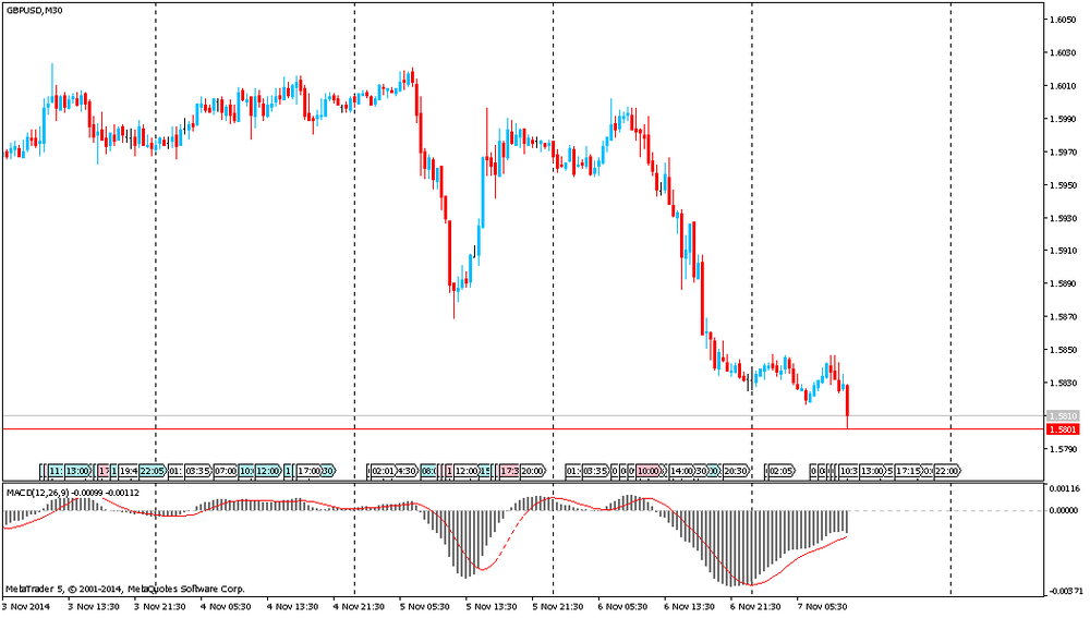 Фунт продолжил падением против доллара США, установив при этом новый годовой минимум. Снижение валюты связано с повсеместным укреплением американской валюты на фоне данных по США, а также с заявлениями главы ЕЦБ Драги, которые указали на приверженность к дополнительным мерам в случае необходимости. Как сообщалось ранее, количество первичных обращений на получение пособия по безработице упало на прошлой неделе, став новым знаком того, что работодатели стали все более неохотно увольнять рабочих, поскольку экономика улучшается. Число первичных заявок на пособие по безработице сократилось на 10 000 и с учетом сезонных колебаний составило 278 000 за неделю, завершившуюся 1 ноября, заявило Министерство труда. Это был второй самый низкий уровень обращений в этом году и меньше, чем 285 000 заявок по прогнозу экономистов. Обращения за предыдущую неделю были пересмотрены с повышением на 1000 до 288 000. Скользящая средняя за четыре недели первичных обращений, которая сглаживает еженедельную волатильность, упала на 2 250 до 279 000, минимум с 2000 года. Отчет также показал: число людей, продолжающих получать пособие по безработице, сократилось на 39 000 до 2 350 000 на неделе, завершившейся 25 октября.