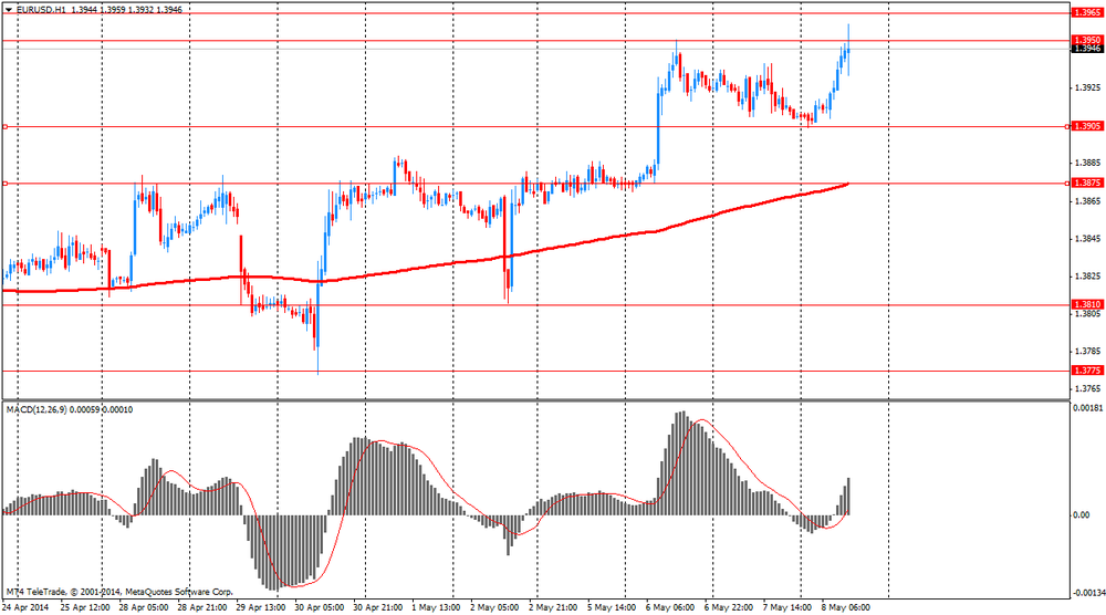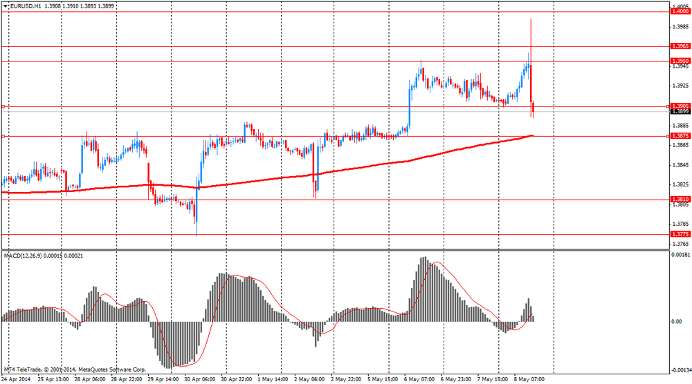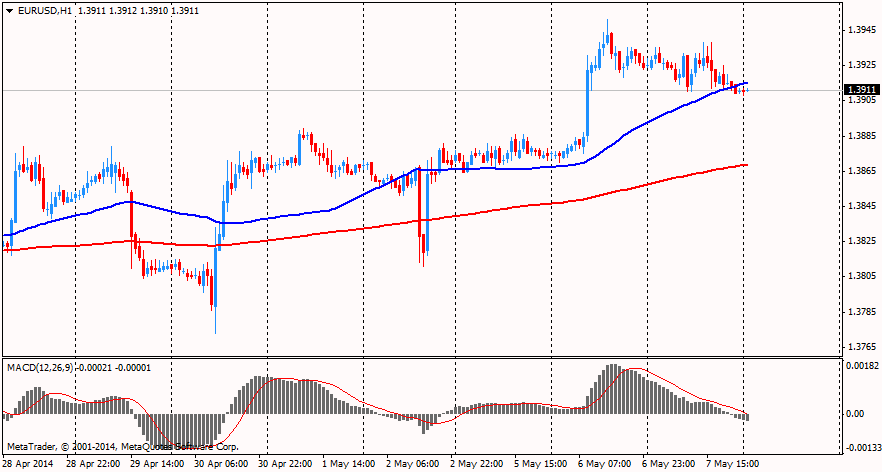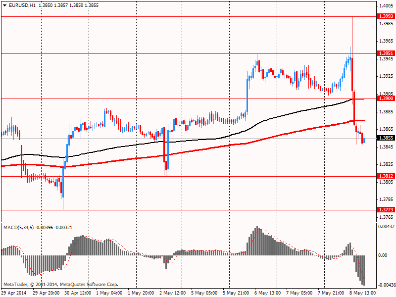 Курс евро обвалился против доллара, что было реакцией на высказывания главы ЕЦБ. В ходе пресс-конференции, последовавшей за заседанием ЕЦБ, на котором Управляющий совет оставил ставку без изменений, Марио Драги дал понять, что ЦБ готов действовать в июне. Его речь не содержала какой-либо новой информации. Он отметил, что экономика восстанавливается в соответствии с прогнозами, а инфляция останется низкой и начнет расти к целевому уровню 2% в 2016 году. ЦБ будет удерживать ставки низкими в течение длительного времени. Также Драги добавил, что геополитическая напряженность может оказать негативное влияние на прогноз по инфляции и ЕЦБ будет пристально следить за курсом евро. Сильный евро на фоне снижения инфляции "это причина для серьезного беспокойства", и в этом случае ЕЦБ будет "готов действовать уже в июне" (т. е. смягчить политику в случае необходимости). Тем не менее, глава ЕЦБ отметил, что Управляющий совет все еще ждет прогнозов ЦБ, которые будут получены в начале следующего месяца. Однако они готовы принимать меры, если волатильность краткосрочных ставок перейдет на среднесрочные.