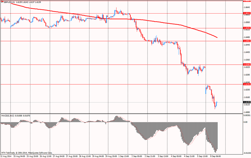 Фунт оставался под давлением против основных валют на фоне рисков выхода Шотландии из состава Великобритании. Накануне были опубликованы результаты опроса общественного мнения в Шотландии, проведенные для газеты The Sunday Times. Согласно полученным данным, количество сторонников отделения от Великобритании впервые превысило количество противников (51% против 49%). Референдум пройдет 18 сентября. Согласно проводимым опросам, количество сторонников референдума постоянно увеличивается.