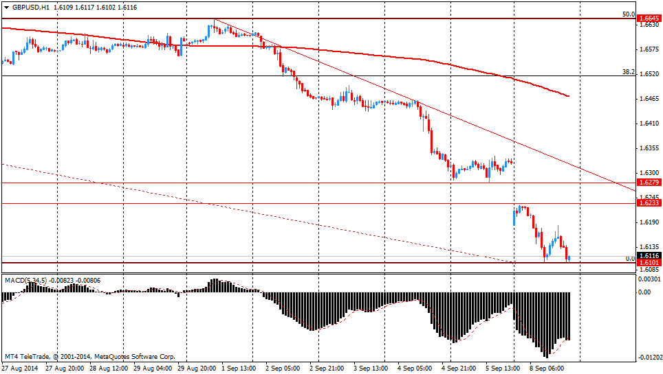 GBP/USD: в течение европейской сессии пара опустилась до $1.6102