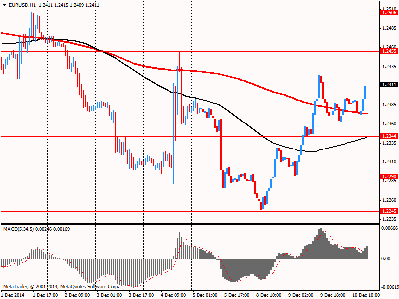 Евро вырос по отношению к доллару, вырвавшись из диапазона $1.2360-$1.2400. Небольшое внимание оказали данные по Франции, показавшие, что по итогам октября объем промышленного производства умеренно снизился, вопреки прогнозами экспертов на небольшое повышение. Согласно отчету, промышленное производство сократилось в октябре на 0,8 процента после того, как оставалось неизменным в предыдущем месяце. Согласно ожиданиям, промпроизводство должно было увеличится на 0,2 процента. Тем временем, производство в секторе обрабатывающей промышленности уменьшилось на 0,2 процента, компенсировав при этом большую часть сентябрьского роста (+0,3 процента). Прогнозировалось, что производство останется неизменным в октябре. Производство транспортных средств и оборудования выросло на 0,3 процента за месяц, тогда как выход в сфере электрического и электронного оборудования упал на 0,8 процента. В то же время, производство нефтепродуктов увеличилось на 0,9 процента, а объем строительства повысился на 0,3 процента по сравнению с падением на 1,8 процента в сентябре. В Статистическом управлении также сообщили, что в годовом выражении объем промпроизводства упал на 1,0 процента вслед за снижением на 0,3 процента в сентябре.