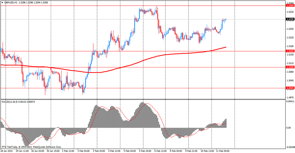 Фунт подорожал против доллара, обновив при этом вчерашний максимум, что связано с ожиданиями публикации Ежеквартального отчета Банка Англии и последующим выступлением главы ЦБ Карни. Поддержку валюте также оказали данные по ВВП от Национального института экономических и социальных исследований (NIESR), показавшие, что восстановление экономики Великобритании, вероятно, ускорилось в течение трех месяцев по январь, получив поддержку от улучшения в сфере услуг. По оценкам NIESR, ВВП вырос на 0,7 процента по сравнению с увеличением на 0,5 процента за предыдущие три месяца (по декабрь). Также в NIESR заявили, что экономический рост в 2015 году может составить 2,9 процента против 2,6 процента в прошлом году, так как снижение цен на мировом нефтяном рынке поможет сберечь деньги потребителей Великобритании.