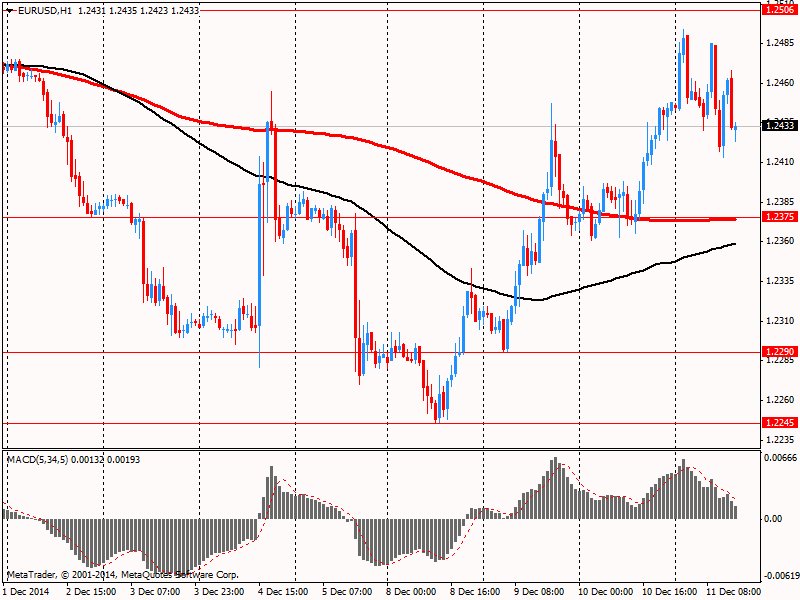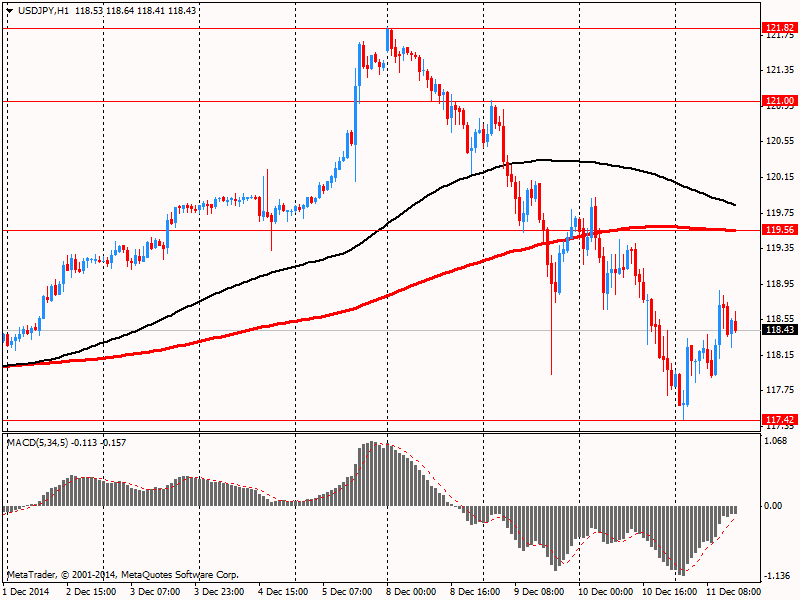 Иена упала впервые за четыре дня на спекуляциях, что премьер-министр Синдзо Абэ и Либерально-демократическая партия победят на выборах в эти выходные. Однако японская валюта испытывает поддержку со стороны потоков в иену как валюту-убежище и сворачивания финансируемой иеной торговли на разнице между процентными ставками на фоне возросшего неприятия риска. Цены на нефть упали к новым пятилетним минимумам после того, как Организация стран-экспортеров нефти понизила прогноз спроса на нефть в 2015 году до самого низкого уровня с 2003 года. Между тем, данные по инфляции в Китае в ноябре, оказавшиеся ниже прогнозов, указывают на ослабление темпов роста во второй по величине экономике мира.