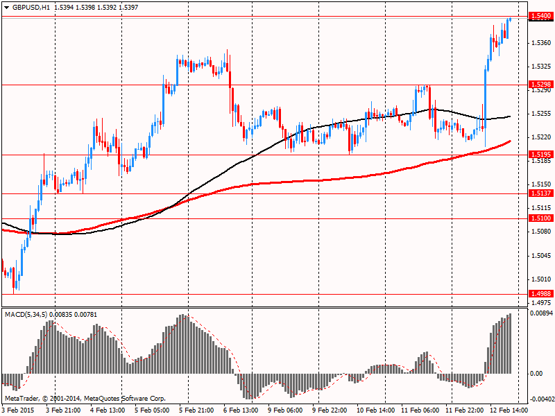 Фунт продолжил свое укрепление против американской валюты, вплотную приблизившись к отметке $1.54. Стоит подчеркнуть, что с начала сессии британская валюты выросла примерно на 150 пунктов. Положительное влияние оказали заявления главы Банка Англии Марка Карни, а также слабые данные по США. Как сообщалось ранее, Банк Англии просигнализировал о повышении процентной ставки в следующем году, несмотря на резкое замедление инфляции. ЦБ намерен через два года восстановить инфляцию в Великобритании до 2% с текущих 0,5%. Слабость роста цен ЦБ объясняет снижением стоимости нефти. "С учетом характера потрясений, влияющих на инфляцию, комитет по денежно-кредитной политике считает целесообразным формировать денежно-кредитную политику таким образом, чтобы инфляция вернулась к целевым 2% в течение двух лет", - говорится в пояснительной записке главы ЦБ Марка Карни. Вместе с тем, по оценкам Банка Англии, через три года инфляция будет выше таргетируемых им 2% и составит порядка 2,2%. В 2015 году темпы роста потребительских цен составят 0,5%, а не 1,4%, как предполагалось ранее, в следующем - 1,8%. ВВП Великобритании вырастет на 2,9% в этом году, прогнозирует ЦБ, что совпадает с предыдущей оценкой. Вместе с тем, прогнозы на 2016-2017 год улучшены до 2,9% и 2,7%. Повышение реального дохода после вычета налогов составит 3,5% в этом году вместо ожидавшихся 1,25%.