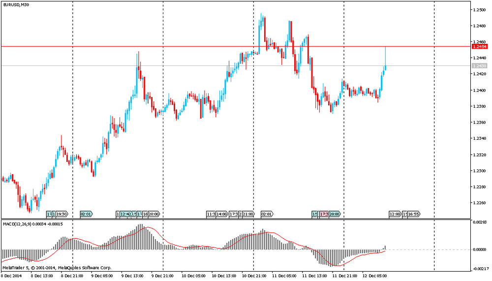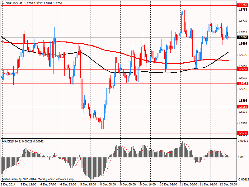 Фунт незначительно снизился против доллара, так как вчерашние сильные американские данные подтолкнули рыночные ожидания повышения процентных ставок. Инвесторы в большом количестве сделали ставку на укрепления доллара в убеждении, что улучшение экономики США заставит Федеральную резервную систему повысить процентные ставки раньше, чем другие центральные банков. Напомним, в четверг Министерство труда США заявило, что число лиц, подавших первоначальные пособия по безработице за неделю, закончившуюся 6 декабря, снизилось на 3000 до 294000 с 297000 предыдущей недели. Между тем Министерство торговли США заявило, что розничные продажи выросли на 0,7% в прошлом месяце, опередив ожидания прироста на 0,3%. Обнадеживающие показатели розничной торговли повысили ожидания первого повышения процентных ставок в США уже в середине 2015 года.