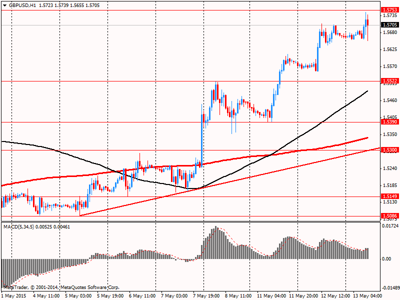 Фунт заметно подорожал против доллара, преодолев при этом психологическую отметку $1.5700, что связано с публикацией положительных данных по Британии. Как стало известно, объем промышленного производства значительно вырос по итогам марта, продемонстрировав при этом самые высокие темпы за шесть месяцев, и ослабив опасения в отношении того, что сильный экономический рост начинает замедляться. Управление национальной статистики заявило: в марте промышленное производство выросло на 0,5% (сильнейший рост с сентября) после повышения на 0,1% в феврале. Эксперты ожидали, что показатель останется без изменений. В целом за первый квартал объем промышленного производства вырос на 0,1%, в отличие от снижения на 0,1%, о котором сообщалось в предварительной оценке по изменению валового внутреннего продукта. Вчерашние данные также показали, что производство в обрабатывающем секторе выросло на 0,4% после пересмотренного увеличения на 0,5% в феврале. Ожидалось, что производство увеличится на 0,3 процента. По сравнению с мартом прошлого года производство в обрабатывающем сфере повысилось на 1,1 процента, зафиксировав самый слабый темп с декабря 2013 года. Между тем, добыча нефти и газа выросла максимальными темпами с февраля 2014 года - на 4,9 процента в месячном выражении. В годовом выражении объем промпроизводства вырос на 0,7 процента против прогноза на уровне +0,2 процента и февральского значения +0,1 процента. Производство в горнодобывающем секторе снизилось на 2.6 процента годовых.
