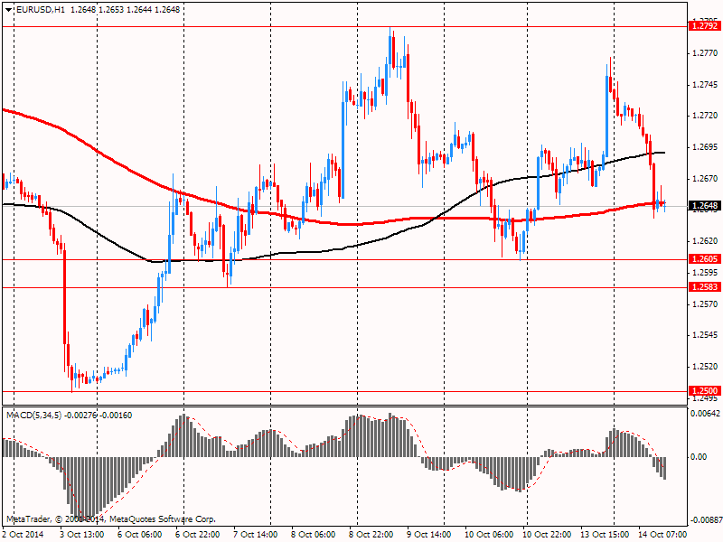 Евро снизился по отношению к доллару США, что было связано с выходом слабых данных по Германии и еврозоне. Один из отчетов показал: индекс доверия инвесторов Германии снова ухудшился в октябре, расширив данную серию до десяти месяцев подряд, и опустившись ниже нулевой отметки впервые с конца 2012 года, что связано с ожиданиями ухудшения экономической ситуации. Согласно данным Центра европейских экономических исследований ZEW, индикатор настроений в деловой среде упал до уровня -3,6 пункта, по сравнению с +6,9 в сентябре. Многие эксперты ожидали снижение данного показателя до отметки +0,2 пункта. Индекс перешел на отрицательную территорию впервые с ноября 2012 года (тогда он составлял -15,7 пункта). Между тем, стало известно, что индекс текущих условий ухудшился до 3,2 пункта с 25,4 пункта в сентябре. Экономисты прогнозировали +15. Кроме того, данные показали: индекс настроений в деловой среде еврозоны также снизился в октябре - до уровня 4,1 пункта с +14,2 пункта. Показатель текущих условий упал до -56,8.