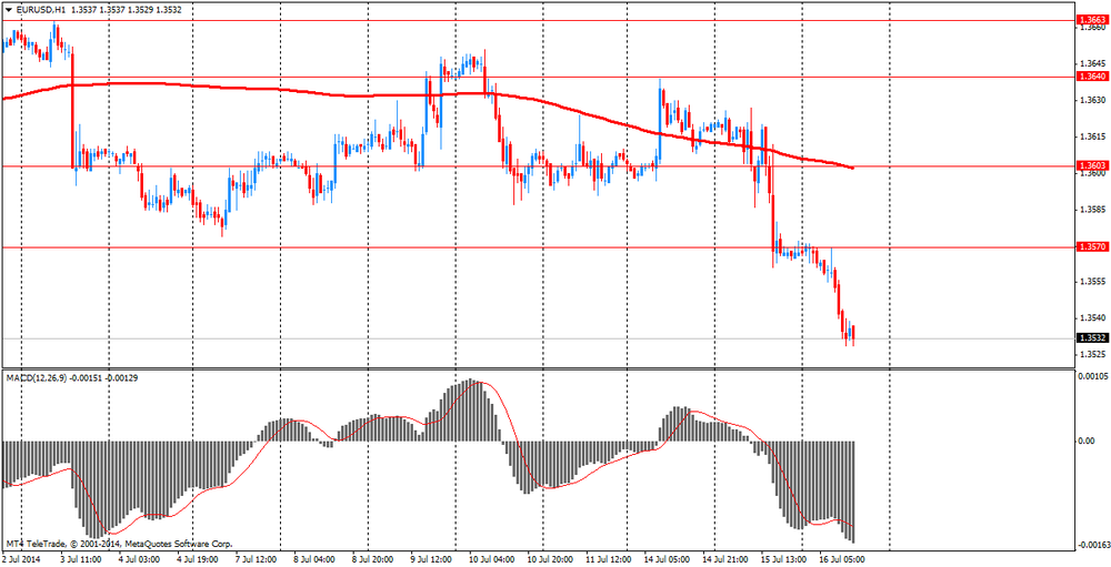 Фунт демонстрировал смешанную динамику против доллара, но в конечном итоге зафиксировал небольшое снижение. Первоначально фунт вырос после выхода отчета по рынку труда Британии и снизился после того, как участники рынка оценили детали отчета, а именно слабые данные по росту среднего заработка. Уровень безработицы в Великобритании продолжил снижаться за три месяца по май, сообщило в среду Управление национальной статистики. Уровень безработицы достиг 6,5 процента - меньше ожиданий на уровне 6,6 процента за период с марта по май. Это самый низкий показатель с октября по декабрь 2008 года. С марта по май было зарегистрировано 2,12 млн. безработных - на 121 000 меньше, нежели за период с декабря по февраль. Уровень заявлений безработных на трудоустройство упал на 3,1 процента в июне с 3,2 процента в мае, достигнув самого низкого уровня с сентября 2008 года. Темпы снижения были меньше ожиданий экономистов - 3,2 процента.