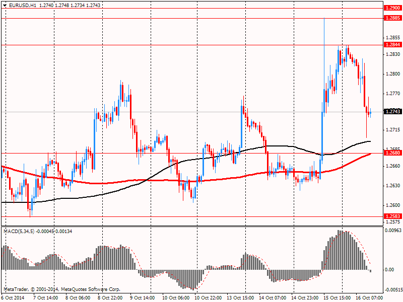 EUR/USD: в течение европейской сессии пара упала до $1.2703, но потом восстановилась до $1.2745