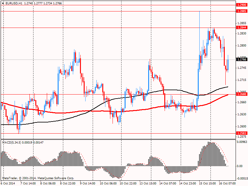 Что касается уже представленных отчетов, то здесь стоит выделить данные по ИПЦ еврозоны. Как стало известно, потребительские цены выросли в сентябре всего на 0,3% в годовом выражении (самый низкий годовой уровень инфляции с октября 2009 года), по сравнению с +0,4% в августе. Последнее значение совпало с предварительной оценкой, выпущенной в конце прошлого месяца. Что касается ЕС, то здесь цены выросли на 0,4% с сентября 2013 года после +0,5% августе, зафиксировав минимальное значение с сентября 2009 года. Данные показали, что восемь стран членов ЕС зарегистрировали снижение потребительских цен по сравнению с прошлым годом, и пять из них оказались членами еврозоны: Греция, Испания, Италия, Словения и Словакия. За пределами еврозонами падение фиксировалось в Болгарии, Венгрии и Польше. Последние цифры, скорее всего, усилят опасения инвесторов по поводу растущей угрозы дефляции в Европе. Учитывая последние данные по инфляции, слабость в экономике Германии и геополитическую напряженность, есть вероятность дальнейшего снижения цен.
